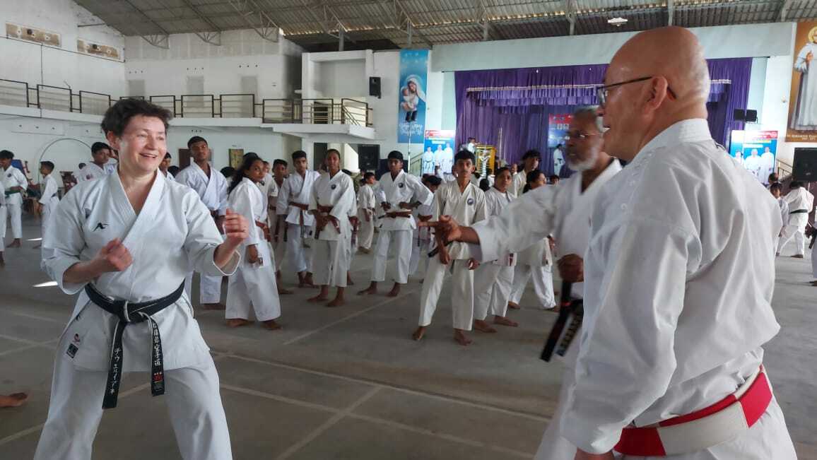 Les 22 et 23 février 2025, Antoine et Eliane ont animé un stage de karaté au sud de l'Inde dans la ville de Kuruppampady dans l'état du Kérala avec 300 participants pour l'anniversaire de l'école AKI SCHOOL OF MARTIAL ARTS.