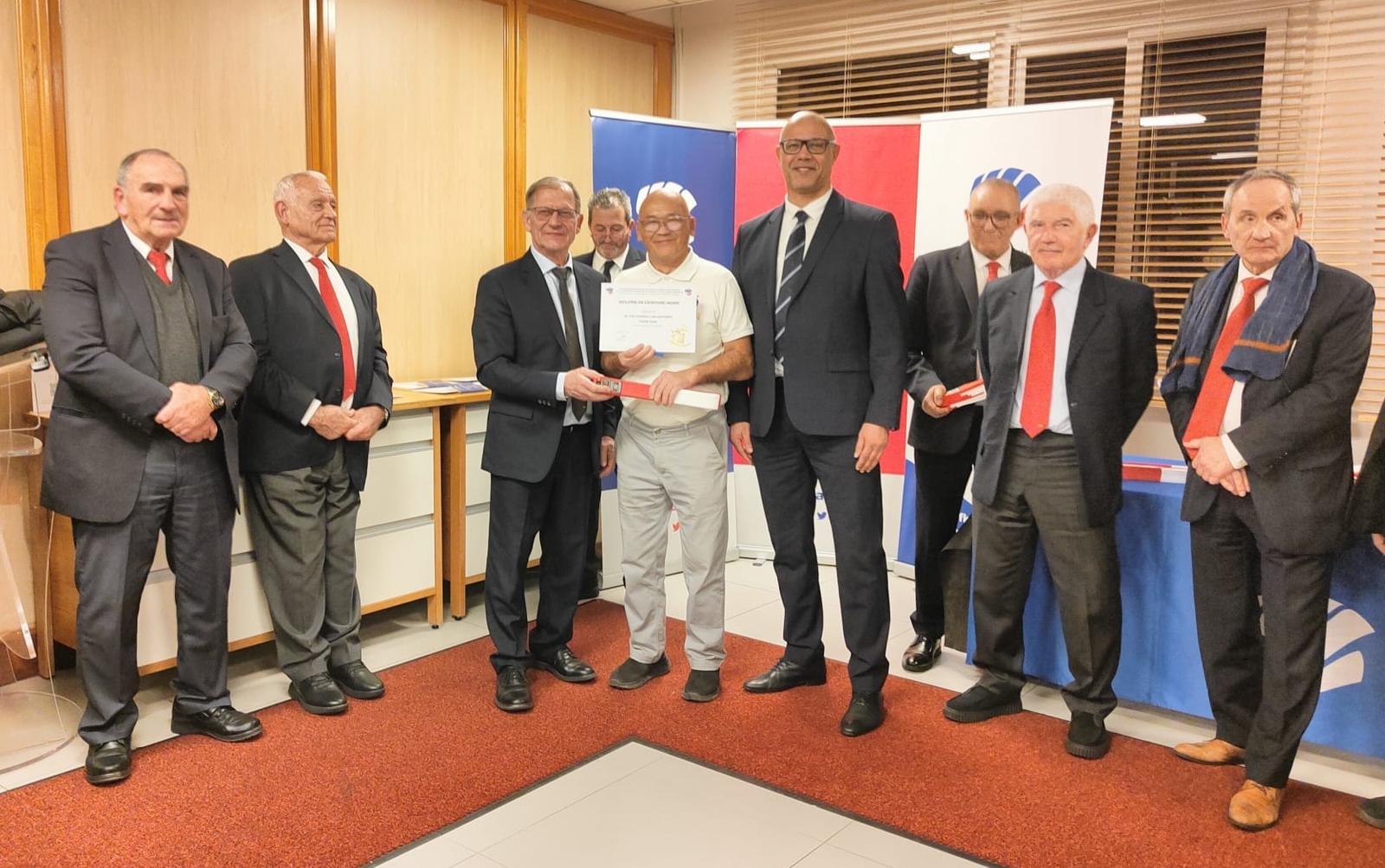 En photo la remise du diplôme par Gilles Cherdieux président de la FFKDA et Francis Didier responsable de la Commission Spécialisée des Dans et Grades Equivalents (CSDGE)